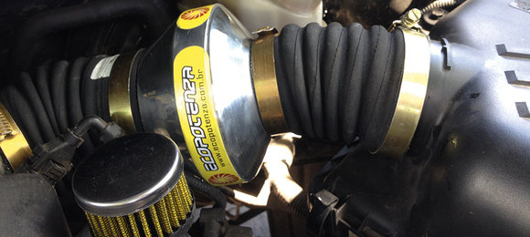 “O conceito do Ecopotenza não é tão complicado. Ele capta o ar, resfria-o e manda uma espécie de turbilhonamento desse ar para o motor, sem deixar que ele retorne para o exterior. Isso provoca uma queima total do combustível, que se traduz em uma resposta imediata e mais economia”, explica Jan Adônis. “Antes o motorista precisava pisar fundo no acelerador para atingir uma determinada velocidade. Com o equipamento, basta acelerar só um quarto para atingir a mesma velocidade.”