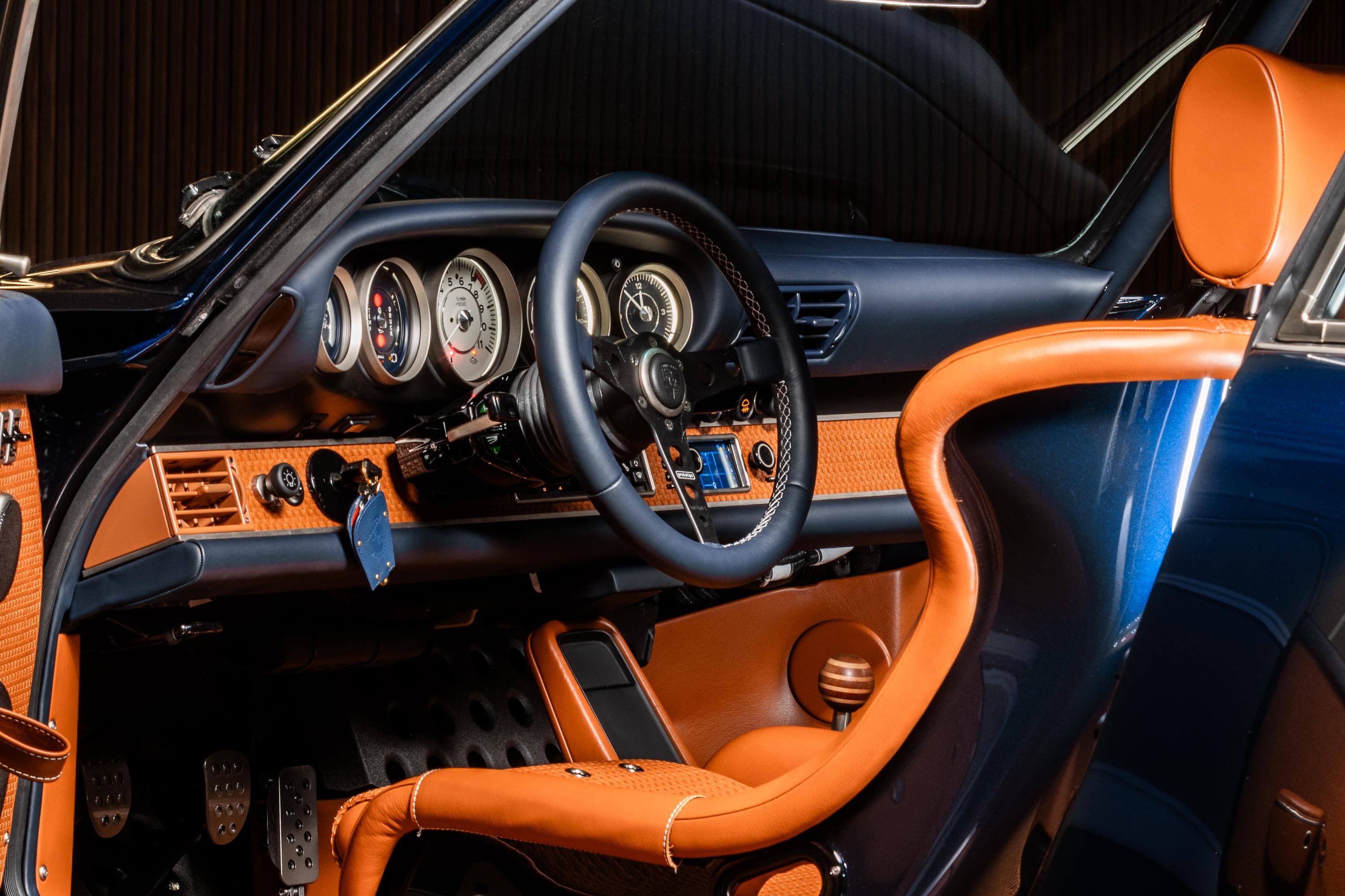 A Singer não tem qualquer relação com a Porsche e até mesmo os componentes que utiliza costumam ser dos seus próprios fornecedores, caso dos faróis de xenônio. O rádio, porém, é um Porsche Classic com direito a integração com Apple Carplay ou Android Auto em uma pequena tela que não destoa do painel do carro. Este exemplar ainda recebeu uma base para o celular no console, um item que ainda estava em estudo quando o comprador visitou a Singer para definir a especificação do seu carro.
