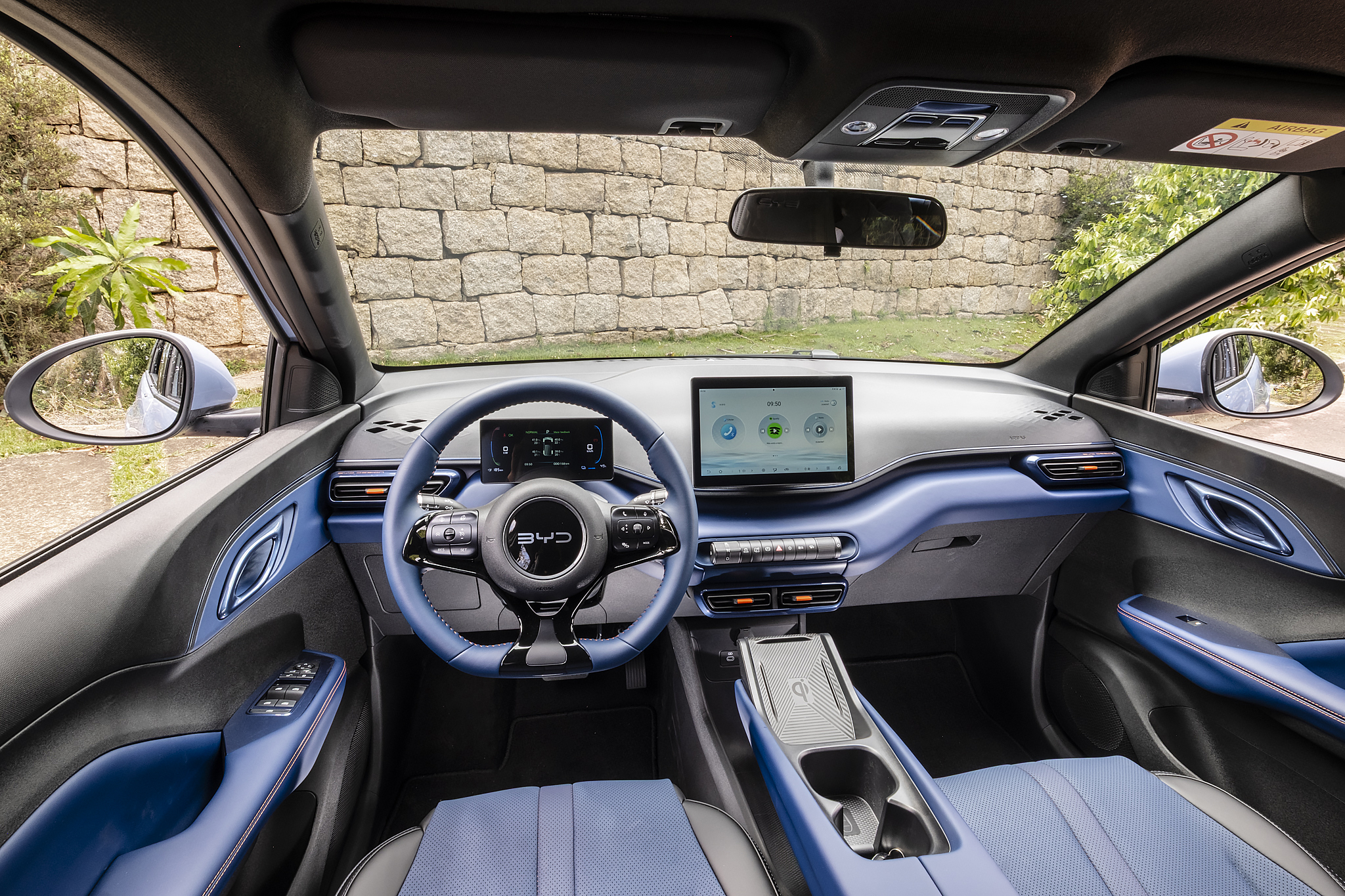 No visual, há outras três novidades discretas. Além dos neutros branco (Apricity White) e preto (Polar Night Black), e do berrante verde (Sprout Green), o Dolphin Mini agora pode ter a carroceria em um suave tom de azul metálico (Glacier Blue). As rodas também são novas, embora o desenho seja semelhante ao anterior e mantenham as 16 polegadas e os pneus 175/55. Por fim, a frase de efeito “Build Your Dreams”, nome da marca por extenso, foi substituída na tampa traseira apenas por “BYD”.