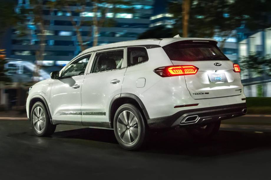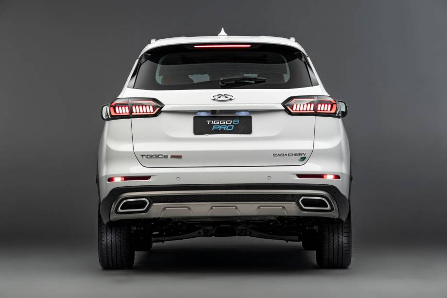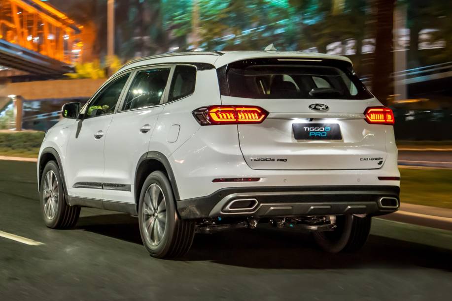 A estrutura do SUV é, basicamente, a mesma do Tiggo 8 que conhecemos. É como se a versão Pro fosse sua reestilização, com faróis full-led mais estreitos, grade e para-choque dianteiros exclusivos e traseira com linhas mais limpas, com para-choque com vincos horizontais e lanternas de leds que não são interligadas por uma barra iluminada.