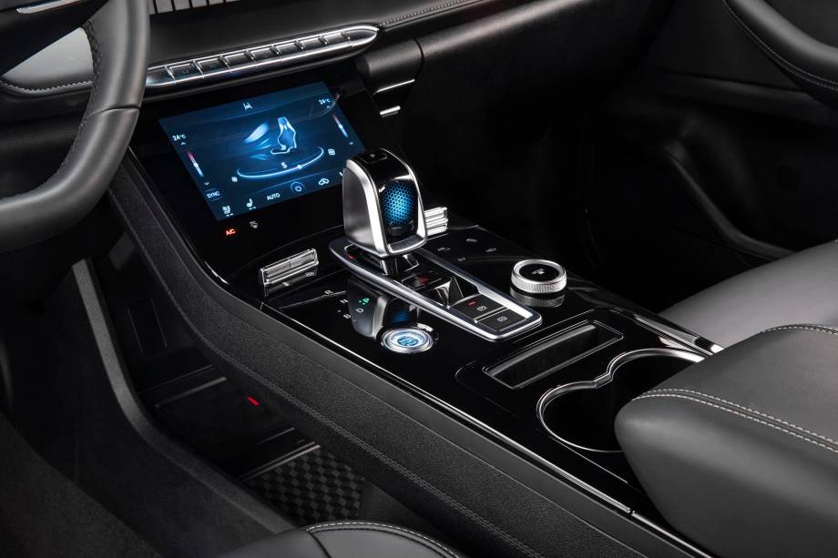Por dentro, também segue o estilo do Tiggo 7 Pro, o SUV médio da Caoa Chery. O painel tem estrutura parecida, mas o quadro de instrumentos e a central multimídia, ambos com mais de 10 polegadas, ocupam uma mesma moldura com 24,6″.