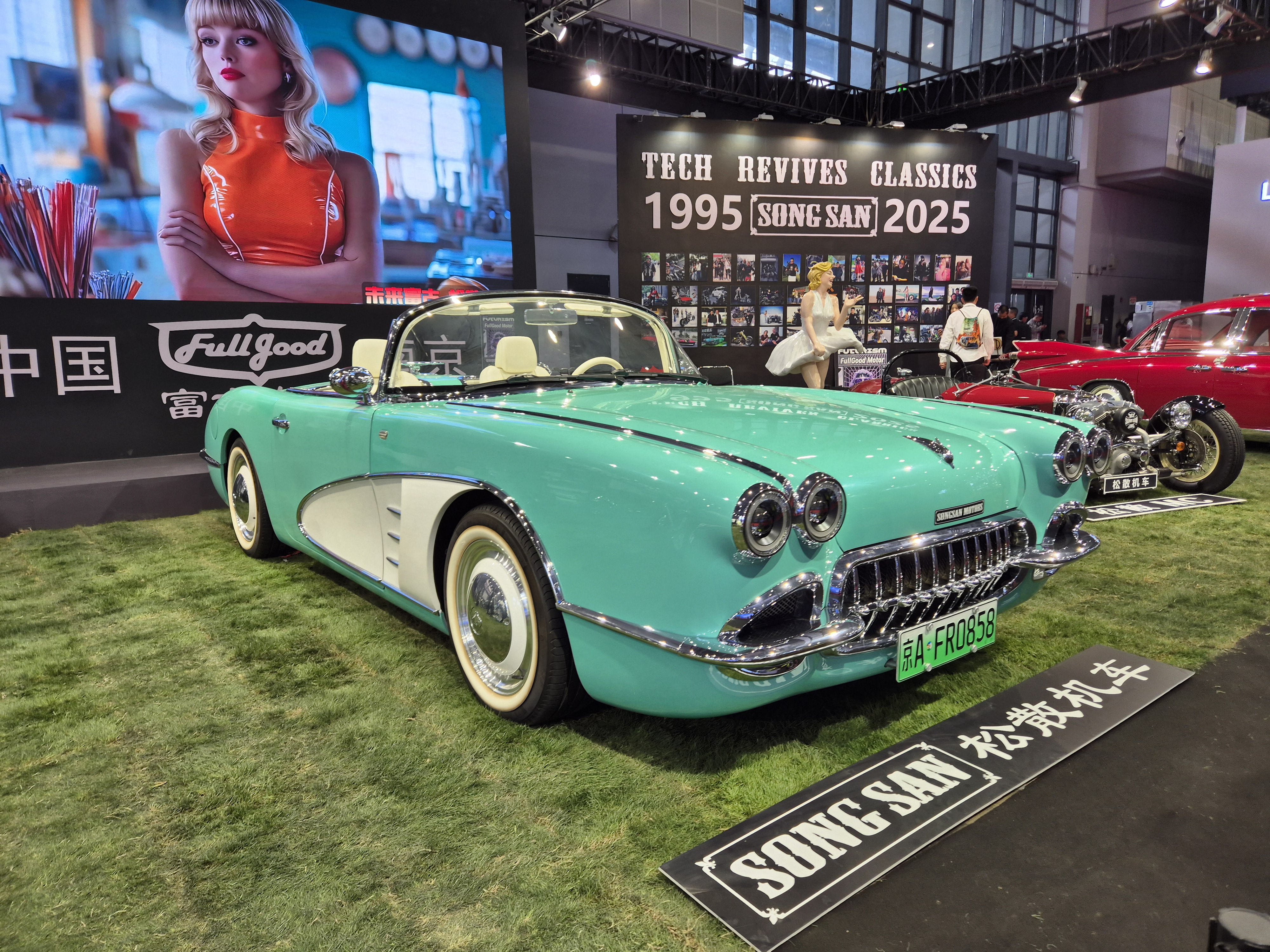 Em um canto do Salão de Xangai, a Songsan mostra algumas das suas criações, como o SS Dolphin, uma réplica da primeira geração do Chevrolet Corvette, e o Monterey, um cupê inspirado no Buick Roadmaster 1957.