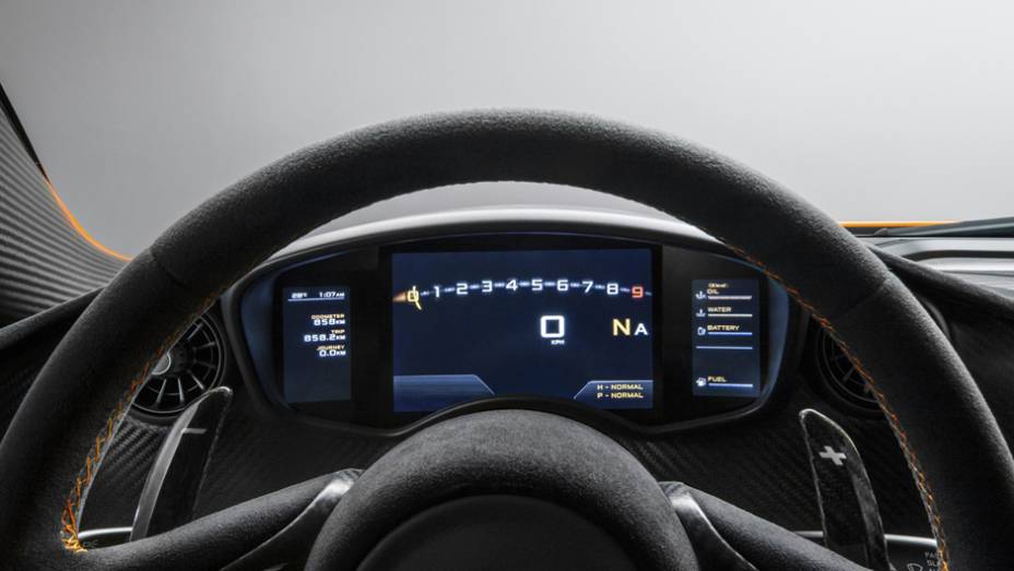 Se a origem do nome do mítico F1 é óbvia, no P1 é mais sutil: significa pole position, em honra à história da equipe inglesa na categoria. Ainda bem que não seguiu a sopinha de letras do irmão menor, o MP4-12C, que utiliza o mesmo V8 3.8 (mas com “apenas” 625 cv). O F1 foi o primeiro carro a usar carbono no monocoque (chassi), exemplo seguido pelo P1, que tem ainda carroceria do mesmo material.