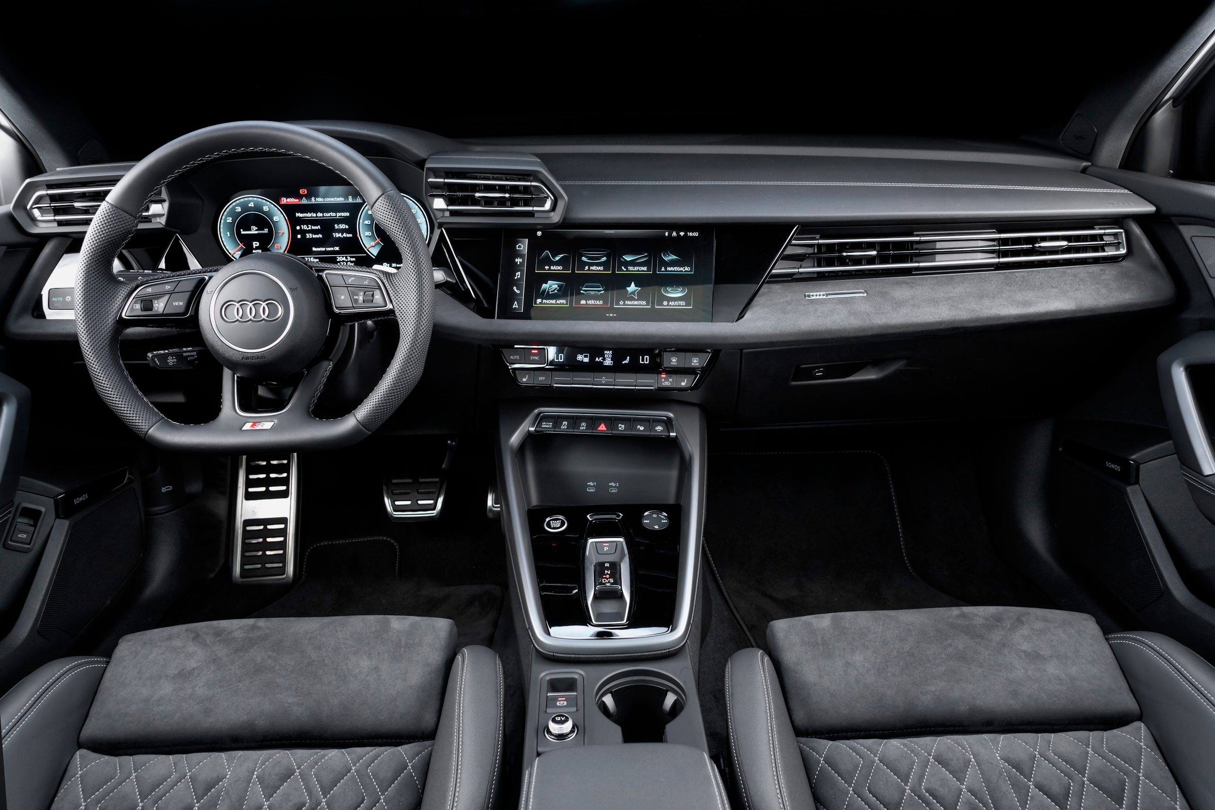 A Audi A3 Sportback Performance tem, de série, aquecedor de banco dianteiro, ar-condicionado automático de 3 zonas, bancos dianteiros eletricamente ajustáveis, navegador MMI Plus com 10,1 polegadas e conexão wireless, retrovisores externos, elétricos, aquecidos e rebatíveis com função de descida do retrovisor do passageiro e assistente de estacionamento inteligente.