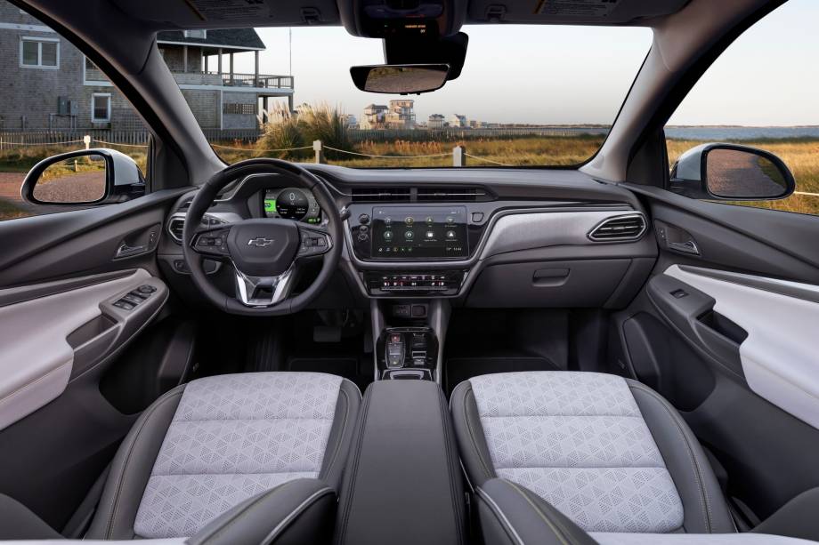 Mas o painel é praticamente igual entre os dois Bolt. A diferença é que o EUV é melhor equipado, tendo carregador sem fio para smartphones de série e opcionais como teto solar panorâmico e bancos dianteiros aquecidos e ventilados, e traseiros aquecidos.