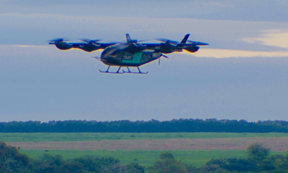 De acordo com a Eve, o feito marca o início da fase de testes em voo e confirma a integração de sistemas essenciais da aeronave, como o conceito de “fly-by-wire” (de controle de voo eletrônico) de quinta geração e os rotores dedicados ao voo vertical.