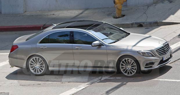 Aparentemente escalado para sessões de fotos de divulgação, o sedã foi surpreendido pelas lentes dos caçadores de segredos. À primeira vista, o Classe S perdeu um pouco da sisudez de seu antecessor. Os faróis nitidamente inspirados no novo CLS e a vistosa grade frontal inspirada no carro-conceito F700 dominam a dianteira. Em contrapartida, algumas soluções estéticas foram descartadas no modelo, como os arcos dos para-lamas pronunciados.