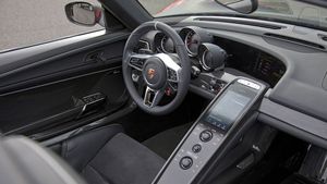 Por sinal, o 918 Spyder tem dois motores elétricos: um no eixo traseiro, de 154 cavalos de potência, ligado ao motor a combustão, e um no eixo dianteiro (127 cv), independente e com bateria de 6,8 kWh. Assim, somando o motor V8 a gasolina (608 cv), a potência total entregue é de 887 cv. A transmissão é PDK, de sete marchas, e a tração é traseira.