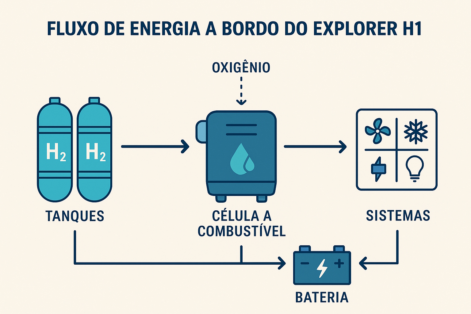 O plano prevê que, já no início de 2026, o Explorer H1 tenha propulsão híbrida a hidrogênio, capaz de reduzir em até 80% suas emissões. Em 2027, entra em cena o Explorer H2, que não será apenas movido pela célula de hidrogênio, mas também capaz de produzir o próprio H₂ a bordo, garantindo sua autossuficiência.