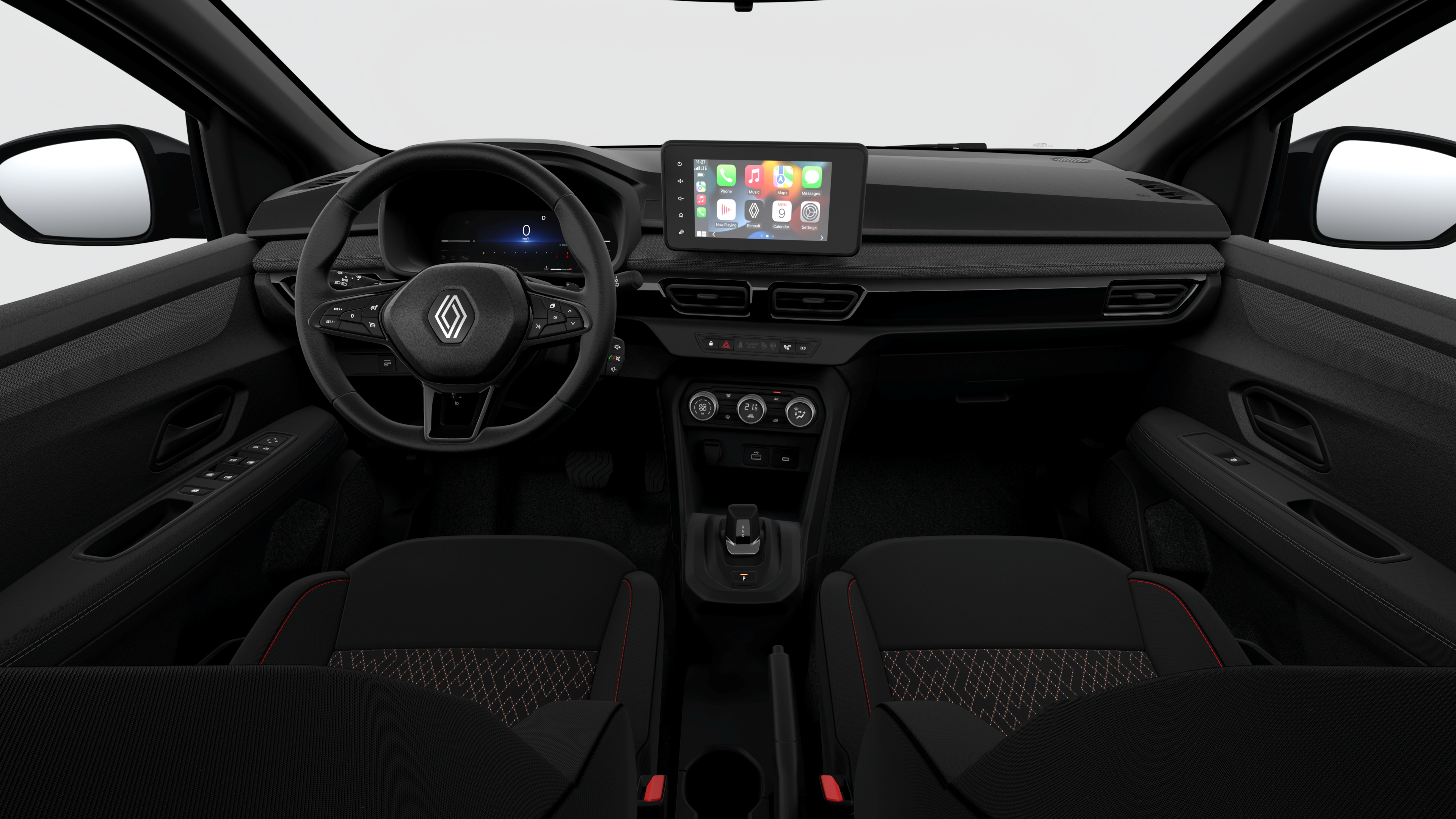 Como é de se esperar, é um pouco menos equipada, embora a Renault diga que ainda é bem competitivo. Vem com quadro de instrumentos digital de 7”, central multimídia de 8” com Android Auto e Apple CarPlay sem fio, seis airbags, piloto automático, sensores de estacionamento traseiros, ar-condicionado digital, freio de estacionamento eletrônico, retrovisores laterais com ajuste elétrico, entre outros.