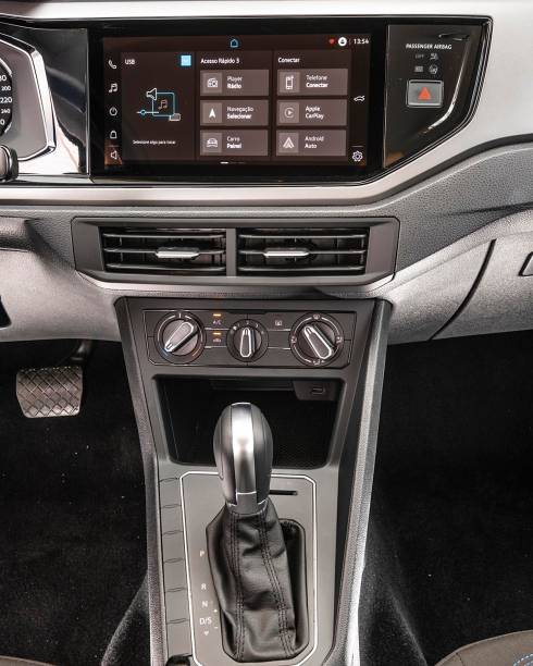 A novidade mais recente do Nivus Highline é o ar-condicionado Climatronic Touch, semelhante ao da versão europeia e reestilizada do Polo, com comandos sensíveis ao toque.