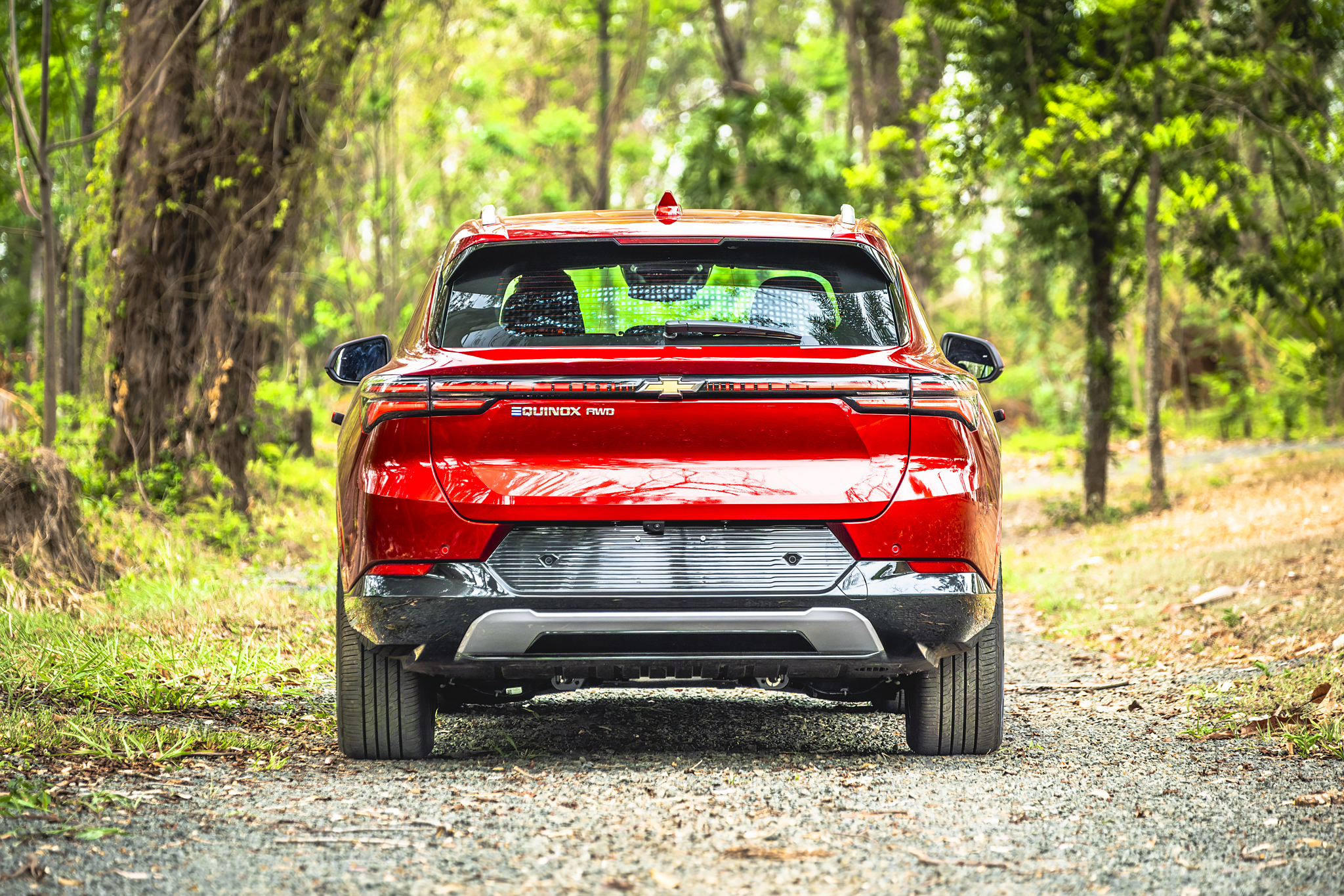A imagem destaca a assinatura luminosa em LED que quase conecta as lanternas, pois é interrompida pela versão preta da gravata da Chevrolet. O recurso das barra de led com intervalos assimétricos é uma clara inspiração no Equinox elétrico e ajuda a aumentar a impressão de largura do carro.