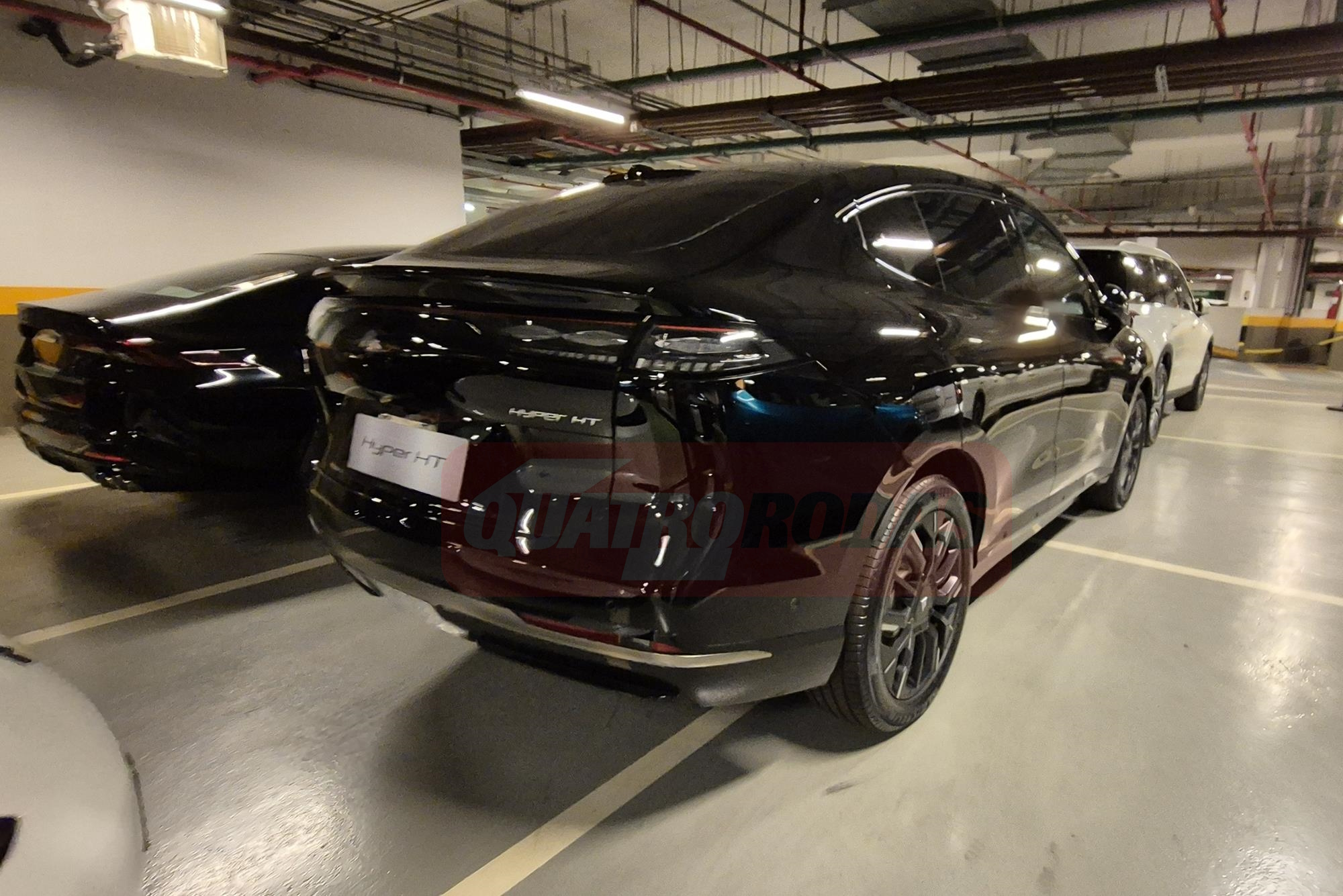 Conhecido com Aion S Plus na China, o ES já está homologado no Brasil e já havia sido flagrado, mas não estava no estacionamento desta vez. É uma versão maior e com outro design do Aion S, com enormes 4,81 m de comprimento. Ao contrário do Hyper HT (mais abaixo), este é um carro mais “civil”, com tração dianteira e potência menor, para aproveitar melhor a autonomia da bateria menor.