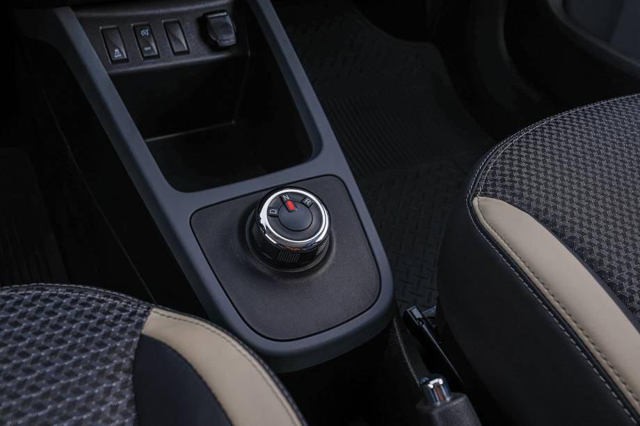 Na estética, só mudando em questão de adesivos e na grade falsa que esconde o carregador em lugar do bocal de carregamento. Os para-choques e a tampa do porta-malas são levemente diferentes, também. E, por dentro, a grande alteração está no console central, com seletor de marcha em lugar do câmbio – até a chave canivete o Kwid mantém.