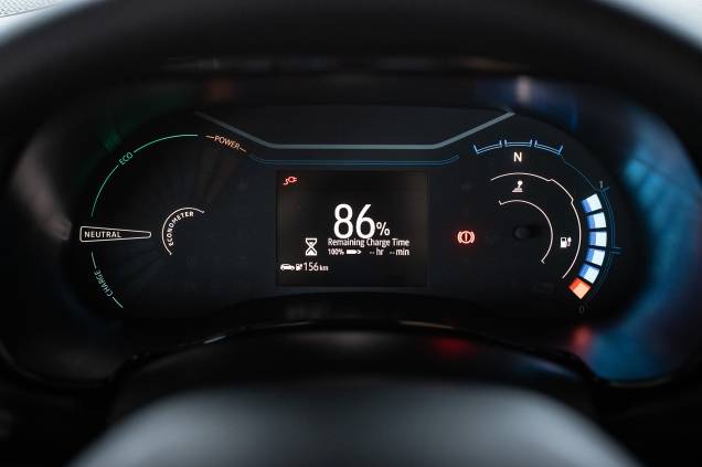 A bateria é bem pequena, com apenas 26,8 kWh, que resulta em uma autonomia de 185 km de acordo com o padrão de medição do Inmetro. Nas tomadas convencionais, são 8h57 para carregar a bateria de 15% a 80%, enquanto wallboxes cumprem o serviço em 2h54. Em corrente contínua (30 kW), leva-se quase uma hora.