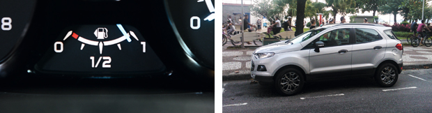 Ponteiro do marcador de combustível não avança totalmente mesmo com o tanque cheio | Nosso EcoSport de Longa foi até a Praia do Boqueirão, em Santos, litoral de São Paulo