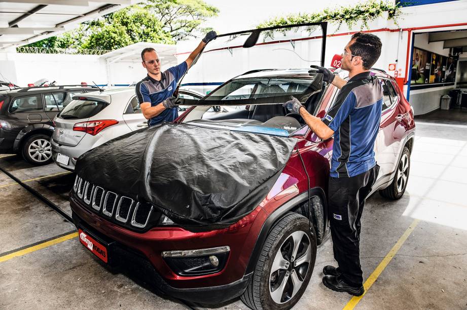 Mas voltemos ao Compass. Com o SUV novamente em São Paulo, ligamos para a seguradora, que informou o valor da franquia (R$ 640) e nos instruiu a agendarmos o reparo diretamente em uma das unidades da Autoglass, empresa especializada em reparo e troca de vidros automotivos.