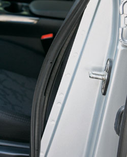 Elogiado por todos pelo acabamento primoroso e pela qualidade dos materiais empregados na cabine, o 3008 surpreendeu no último mês. A guarnição (borracha de isolamento) da porta dianteira esquerda começou a se soltar sem motivo aparente. “Eu a reposicionei em duas ocasiões, mas ela não fica mais na posição correta”, disse o fotógrafo Silvio Gioia, que aproveitou para fazer uma foto para o nosso diário.