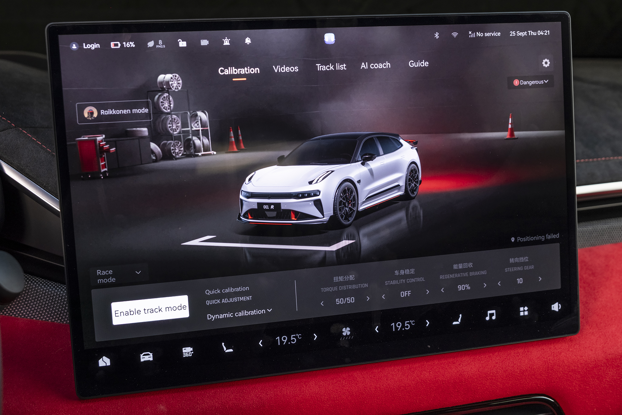 O perfil calmo, reservado e direto do piloto finlandês parece ter se resumido neste modo de condução especial, que é habilitado em uma aplicação dedicada às funções de alto desempenho do Zeekr 001 FR. É onde o motorista pode monitorar seus tempos de volta e outros dados da telemetria.